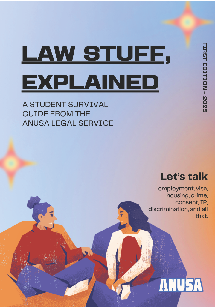 The ANUSA Legal Service has put together a Legal Handbook. Law Stuff, Explained discusses employment, visa, housing, crime, consent, IP, discrimination, and more!
