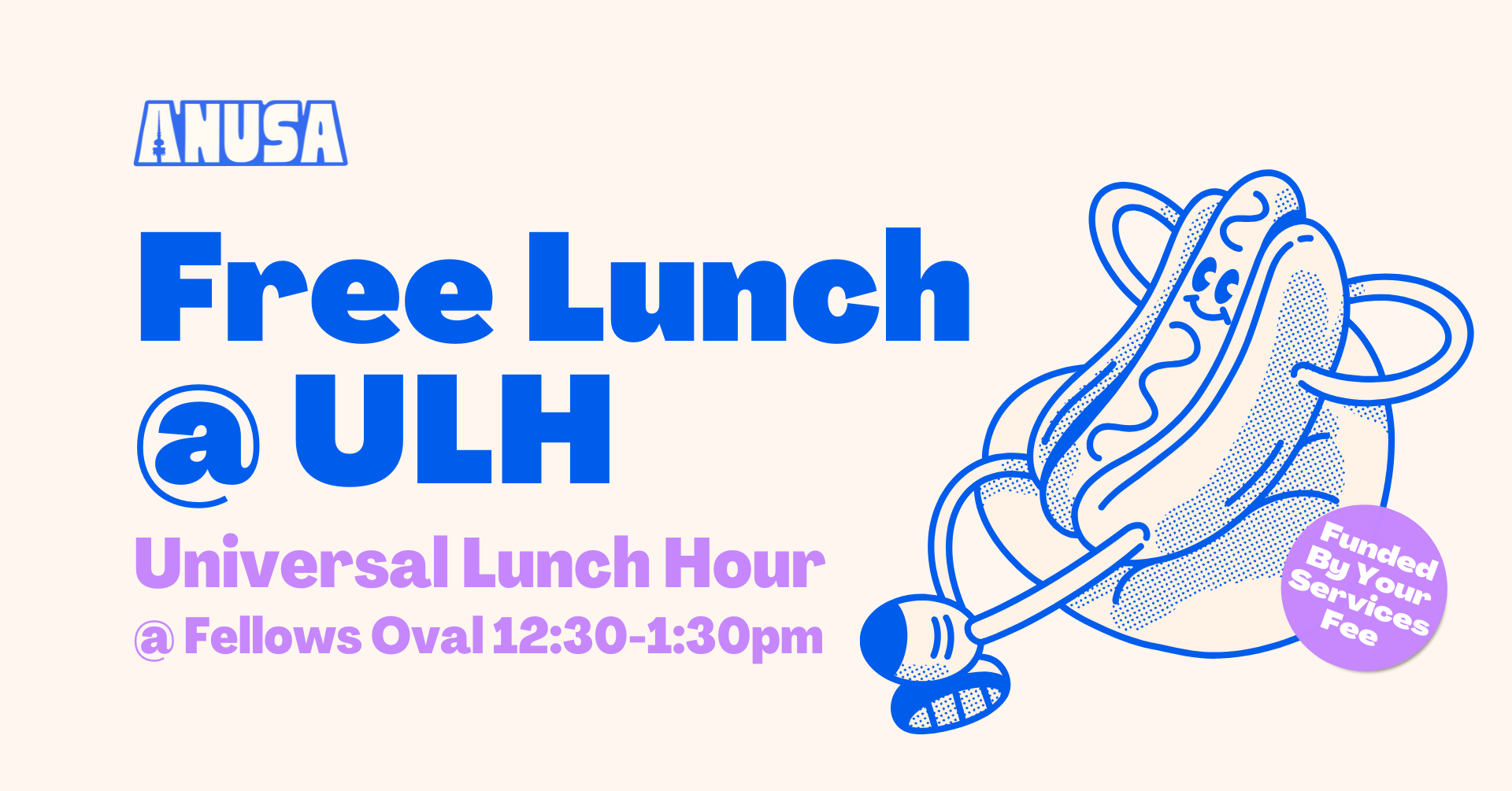 After a quick bite? Universal Lunch Hour—or ‘ULH’ as its more often referred as—is a free BBQ. The usual items on offer are sausages (meat and vego), onions, bread, and occasionally the odd hashbrown or kofta.